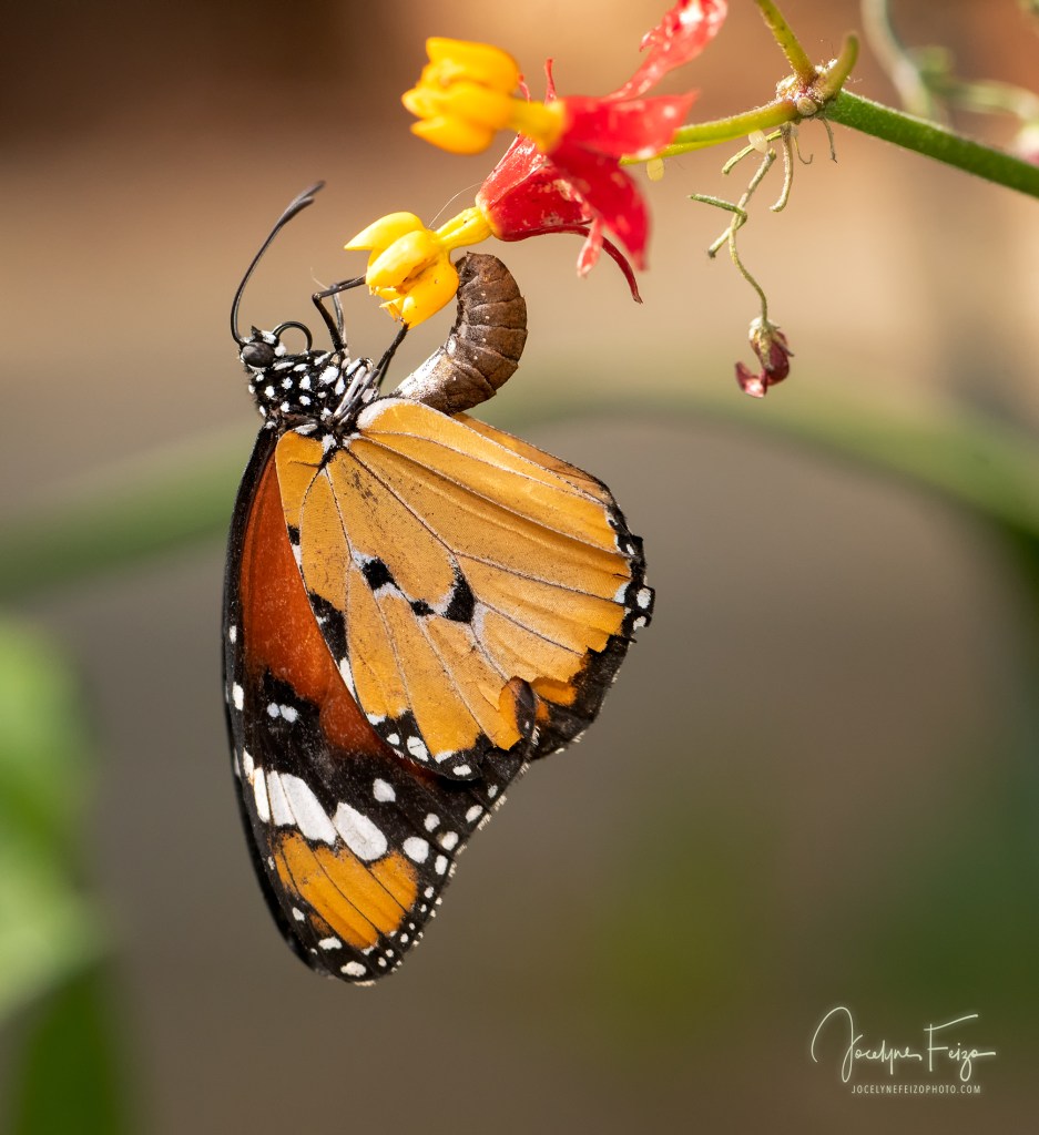 Petit monarque entrain de pondre